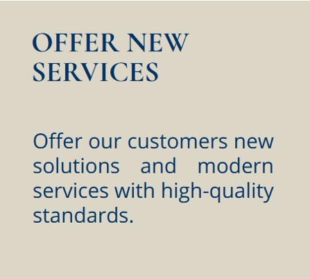 Offer our customers new solutions and modern services with high-quality standards.